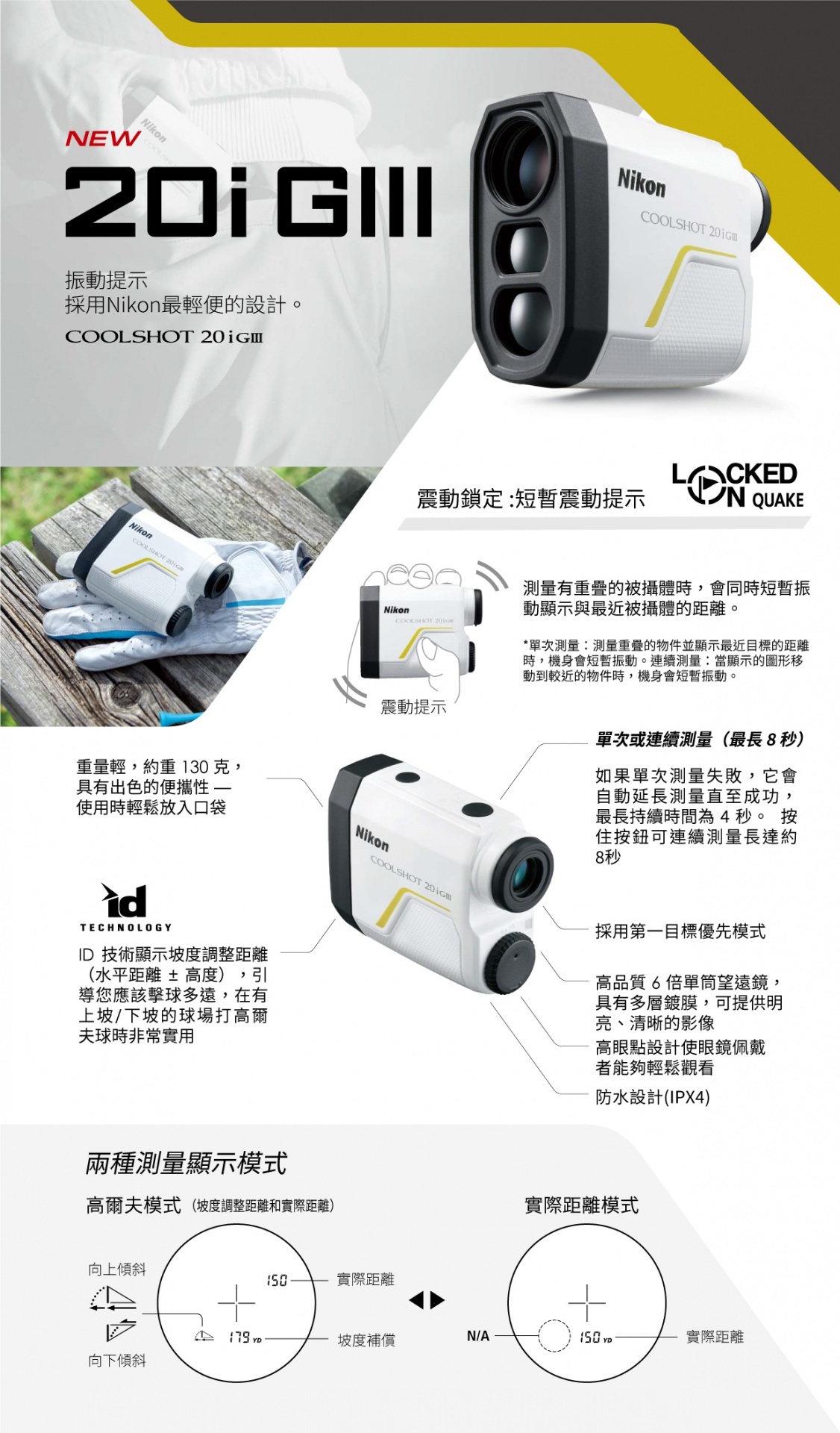 這台 Nikon COOLSHOT 20i GIII 小巧又精準,只有約 130 克,拿在手上幾乎沒感覺,卻能迅速鎖定旗桿,機身輕震告訴你距離到底有多遠,搭配坡度補償模式讓你知道該用哪桿,一目了然、揮桿更有把握 ⛳️ 精準又可靠,絕對是你場上的貼心真夥伴!
