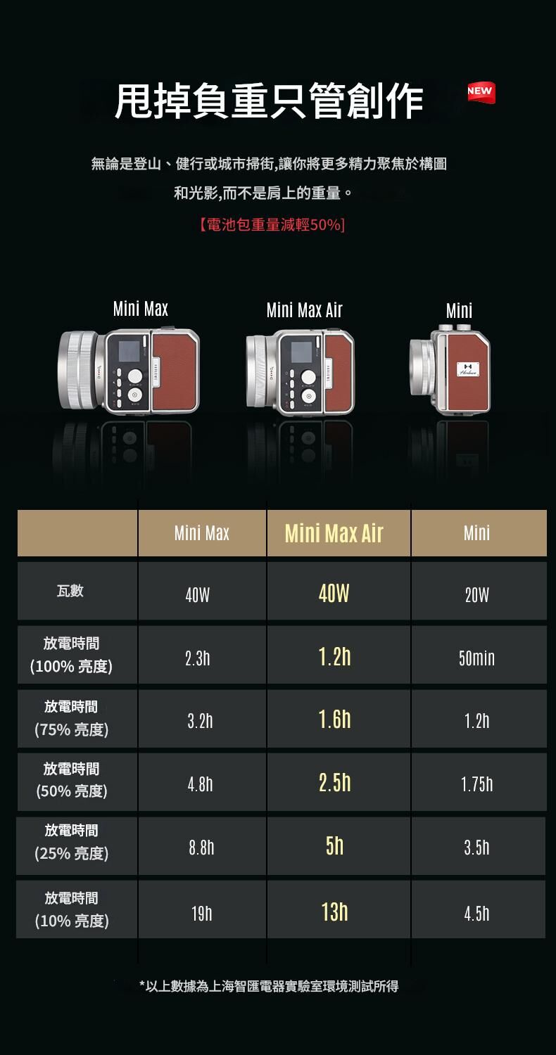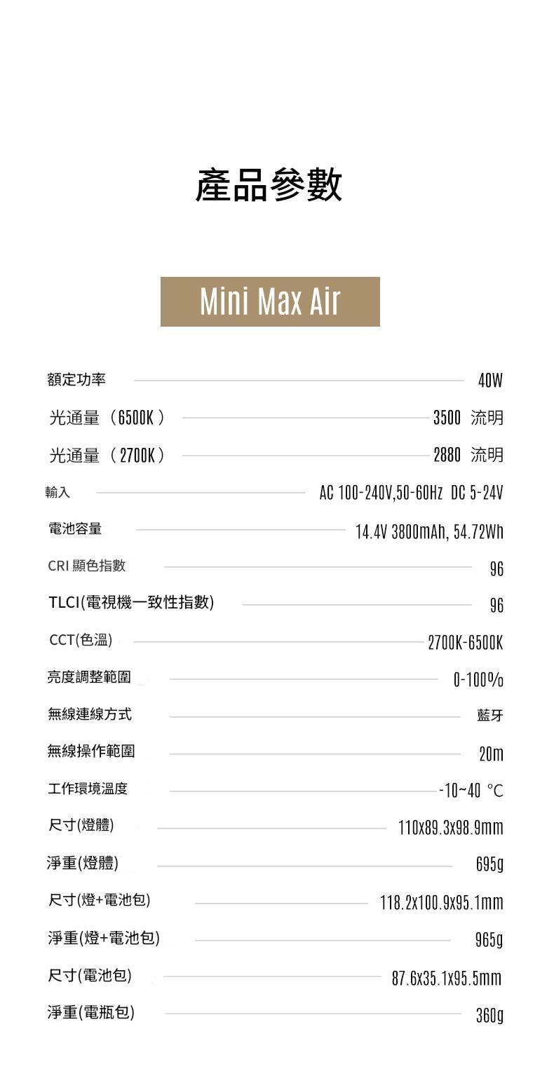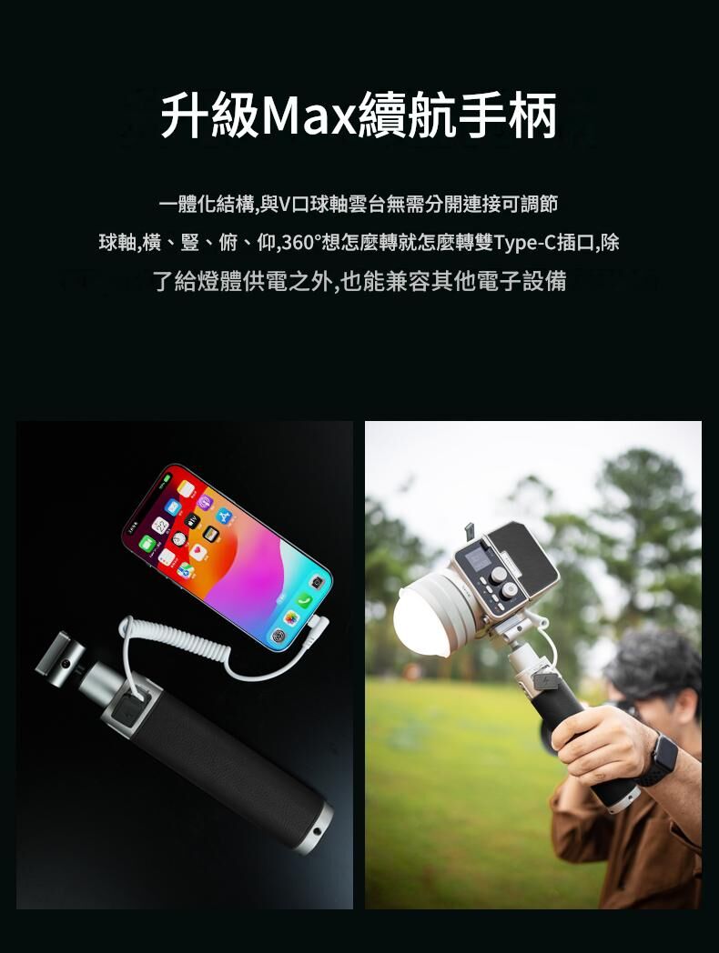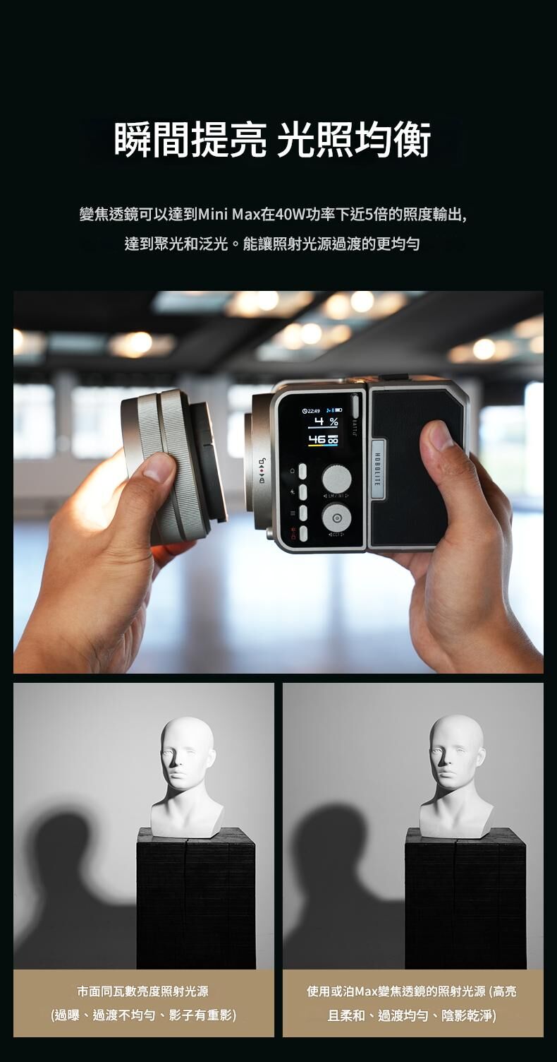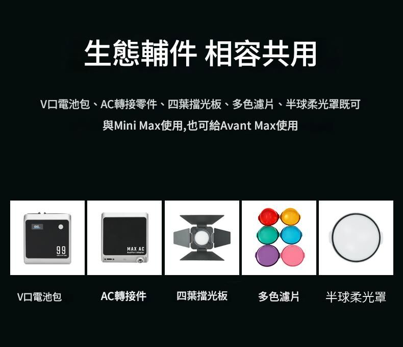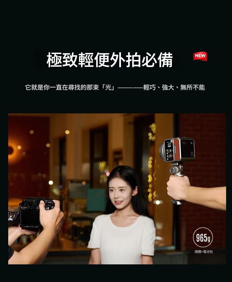 專為戶外拍攝照明設計,保留了原版 Max 40W 的 40W 雙色 COB LED 引擎與 CRI/TLCI 96+ 色彩保真度,但加入了設計師與創作者一直期待的創新。